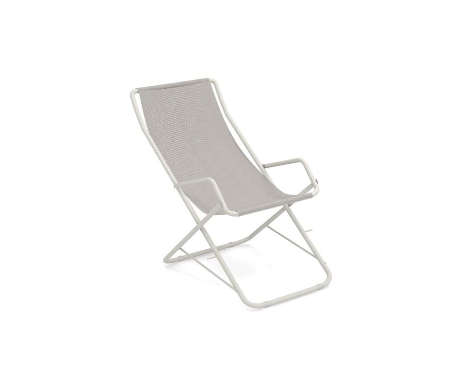 La Bahama Sdraio cod. 170, evergreen del catalogo EMU, combina struttura in tubolare d’acciaio pre‑zincato e verniciato EMU‑Coat Bianco Opaco con seduta in tessuto tecnico Emu‑Tex Ghiaccio (300/42). Grazie al meccanismo anti‑ribaltamento brevettato, è sicura, comoda e facile da spostare. Con soli 5,4 kg, una portata fino a 200 kg e dimensioni compatte (58 × 108 × 95 cm), sta ovunque: dal bordo piscina al terrazzo, ma è perfetta anche per ambienti contract.
