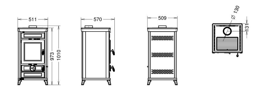 - Uscita fumi Ø 130 mm